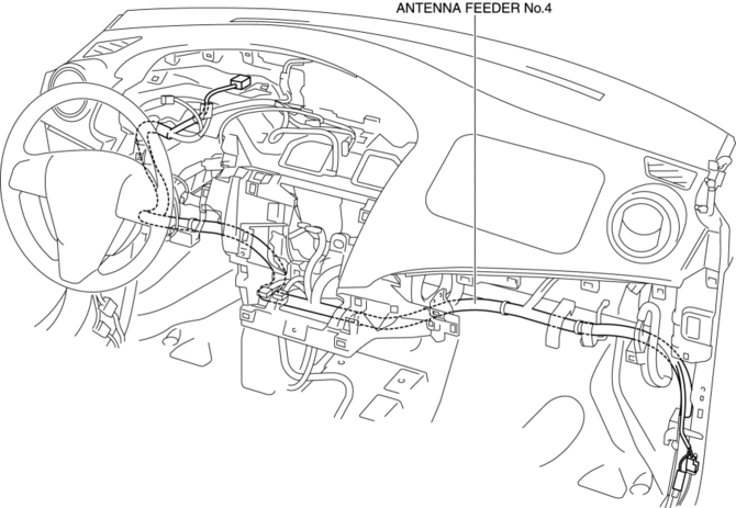 The antenna feeder No.4 is integrated with the dashboard wiring harness.