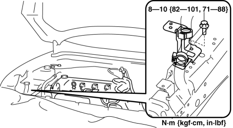 8. Install the battery tray bracket to the No.4 engine mount rubber, and then tighten the nuts.
