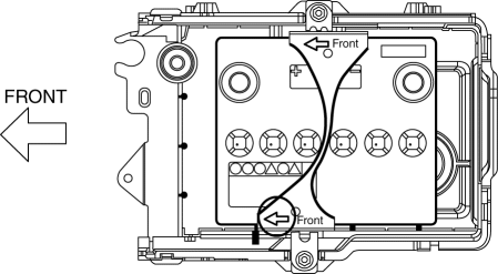 1. Assemble the battery clamp so that the arrow on it is pointed toward the front of the vehicle.