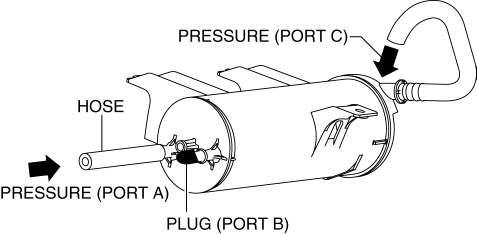 ) through the hose, and verify that air does not leak from the charcoal canister.