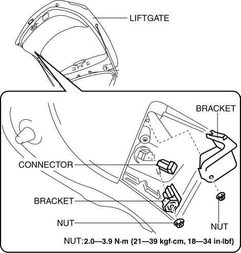 1. Push the bracket into the liftgate as shown in the figure and install.