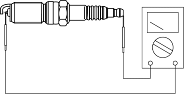 1. Measure the resistance of the spark plug using a tester as shown in the figure.