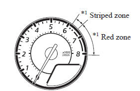 NOTE When the tachometer needle enters the STRIPED ZONE, this indicates to the driver that the gears should be shifted before entering the RED ZONE.