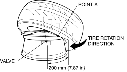 4. Insert the tire lever at the point 40 mm {1.6 in}